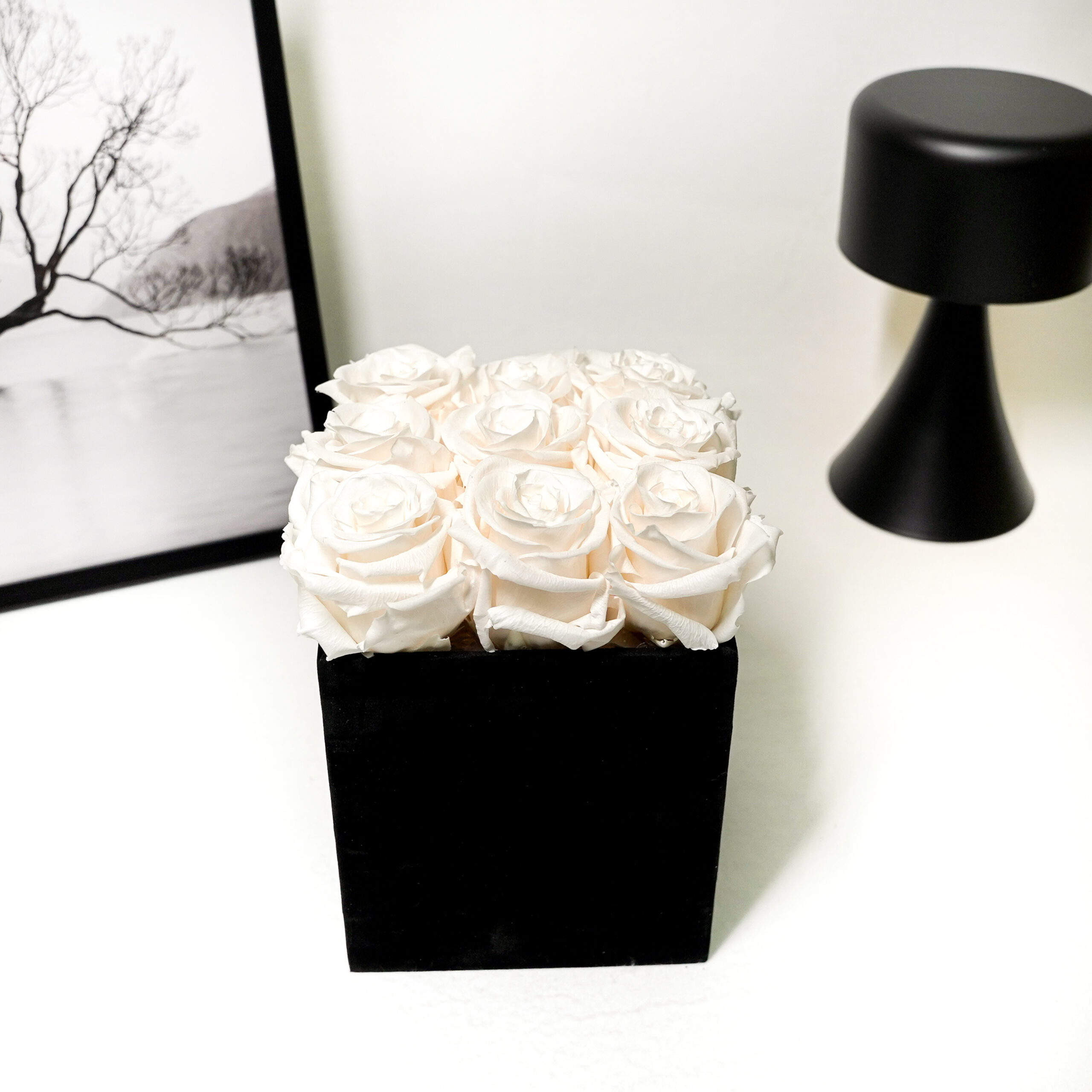 Die Aura der Neun kombiniert klare Form mit floraler Intensität. Neun konservierte Infinity Rosen – perfekt als Geschenk für Führungspersönlichkeiten, Business-Jubiläen oder Rauminszenierungen mit Anspruch. Ein Symbol der Souveränität, das über Jahre hinweg strahlt.