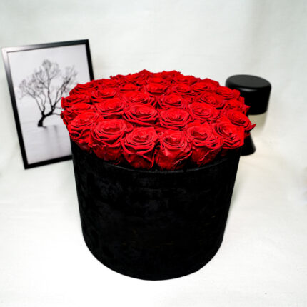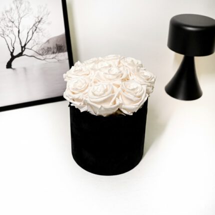 Eine konservierte Infinity Rose in runder Box für besondere Momente, ohne viele Worte.